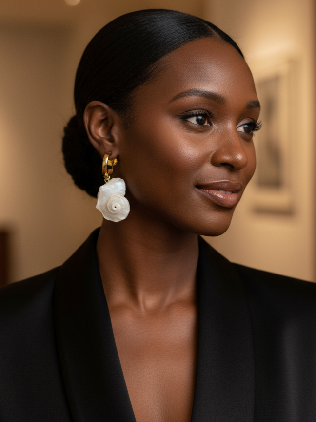 Candongas con piezas en bronce, baño de oro 24k, y nacar.
