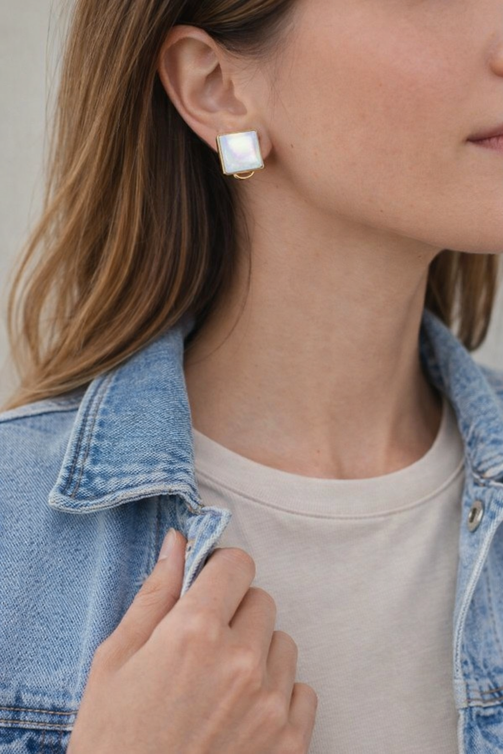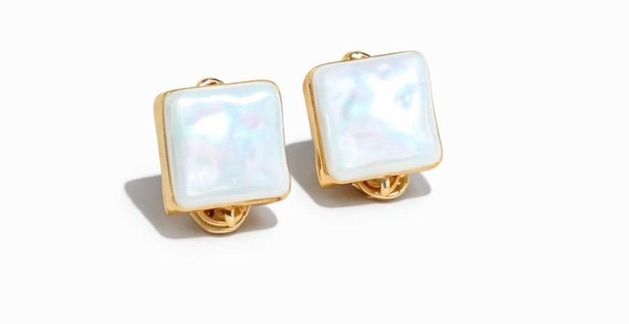 Aretes fabricados en bronce con baño de oro 24k y perla shell.