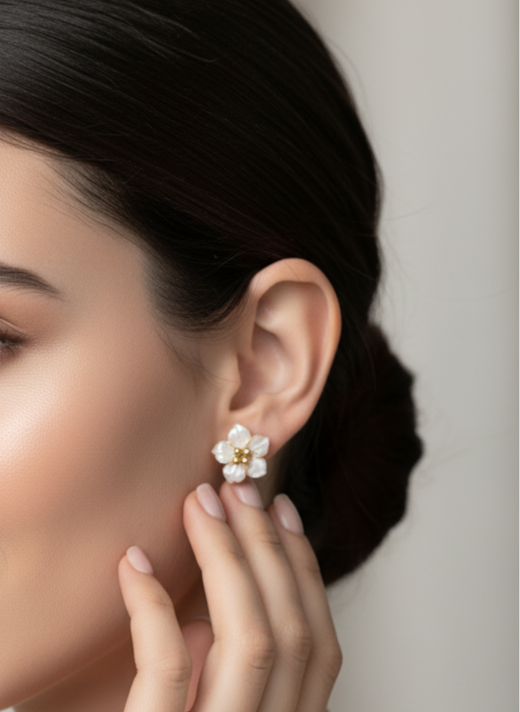 Topos con nacar, elaborados en bronce con baño de oro 24k y recubrimiento de laca cataforética.
